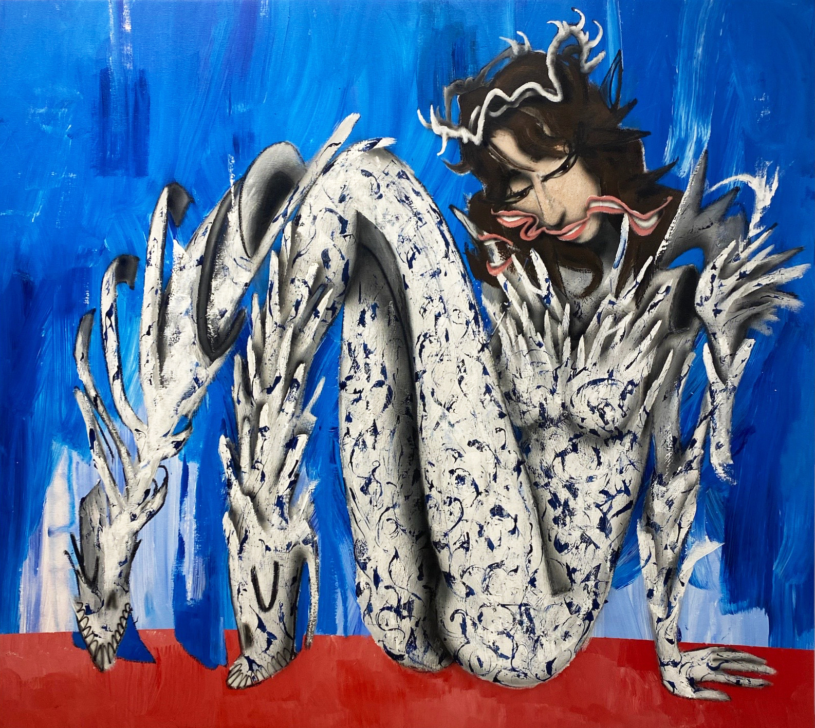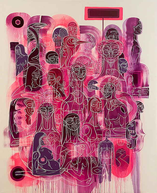 Featuring paintings of the artist’s ‘Cyber Bandit’ NFTs. This collaboration between artist and computer pushed the imagery well beyond my internal stylistic biases …